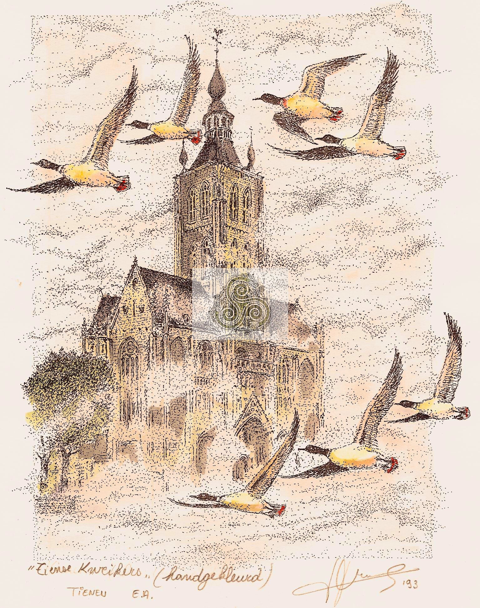 Handgekleurde en genummerde drukken